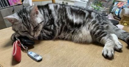 私が実家に行くと「にゃ〜」と小さな声で挨拶をしてくれ、椅子に座ってじ〜と見つめたり、机の上で私の車のキーを枕に寝そべったりと気楽に過ごしているようです。工事後は頭あたりに湿疹や目のアレルギーなど色んな症状があり、よく病院に連れて行っていました。 一時は「老衰かな〜」と思ってみたりと心配でしたが、最近は食欲も旺盛で穏やかに過ごしています。以前のように母のベッドの上で寝ることが多く、エアコン温度調整された快適の中で暑さ、寒さ知らずです。 未だに2階以上に上がることはなく、私が2階で行っても全く興味も示しません。「何が嫌なのか…」モモの心の中をのぞいてみたい気分です。