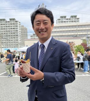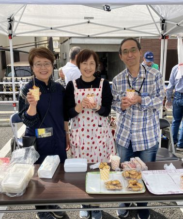 昨年までは30kgを作っていましたが早々と完売するので今年は40kgに増やしました。午前7時30分〜あらかじめ潮江福祉会館で切って半分程度下ごしらえをして行ったので手際よくできました。潮江社会福祉連絡協議会役員のチームワークの良さでしょうか(笑)。松本尼崎市長も来られ、大学芋を買って下さいました。