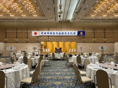 尼崎市保護司会新年互例会が都ホテルで行われ、会員・来賓合わせて約100名が参加いたしました。新年のご挨拶、叙勲を受章された方、法務大臣賞を受章された方のご紹介、新任保護司さんのご紹介など約1時間ありその後歓談となりました。