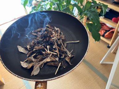 節分 恵方巻、イワシ 宝種木の煙で清める